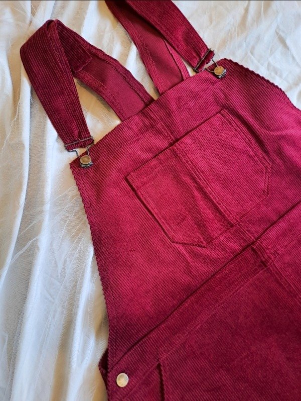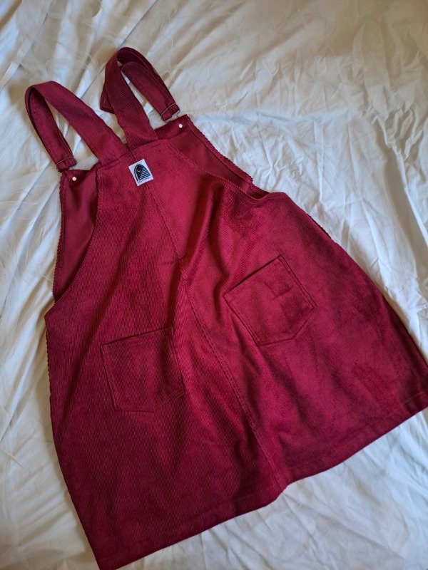 Jumper corto, con falda recta, bolsillos delanteros y traseros, +/- 8/10 cm holgado en contornos. El tono del textil puede variar por la edición de la foto.